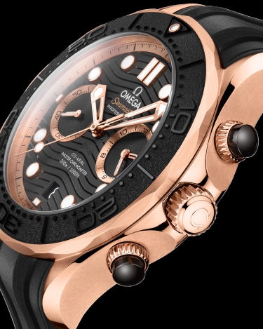 • Seamaster Diver 300M Co-Axial Master Chronometer Chronograph 44mm Sedna Gold Black Dial On Rubber Strap(1:1 replica)