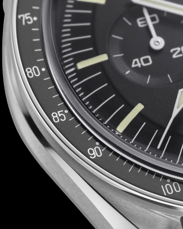 Inspired by the 4th generation Speedmaster style worn on the moon, it also includes