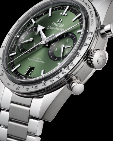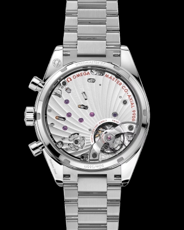 The watch is presented on a matching bracelet with OMEGA’s patented comfort