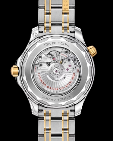 by the OMEGA Master Chronometer Calibre 8800, which can be seen through the