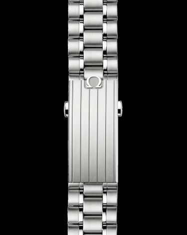 asymmetrical case, black step dial with applied OMEGA logo and the famous dot over 90
