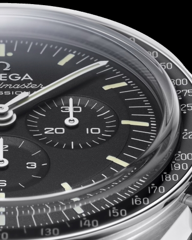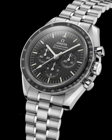 Inspired by the 4th generation Speedmaster style worn on the moon, it also includes an